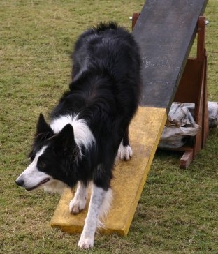 Moss completing the See-saw All handlers and dogs compete for fun only, although coloured rosettes and trophies for the winners are eagerly sought prizes. Dogs love to take part for the thrill of running over the obstacles whilst for the human handlers the sense of achievement of obtaining a successful clear round can be a real adrenalin buzz.